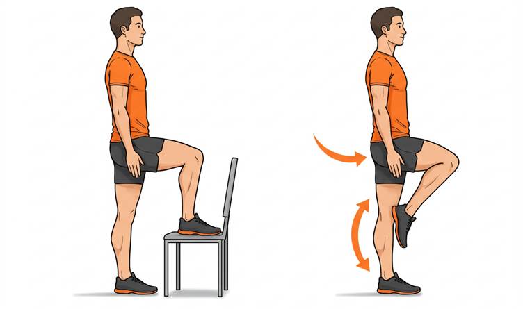 - Levante uma das pernas, mantendo a outra firme no chão.