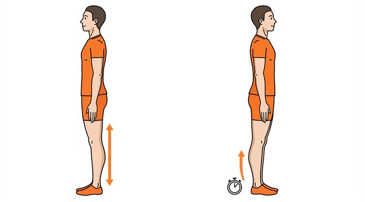 - Suba na ponta dos pés, contraindo a panturrilha.